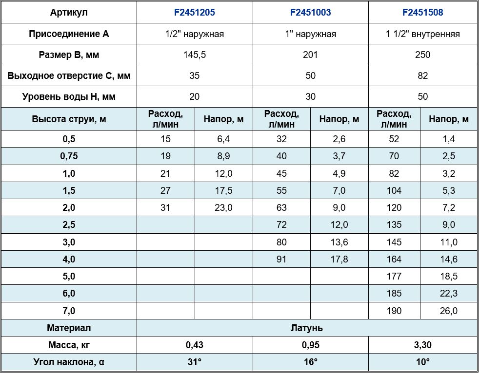 Высота струи max, м