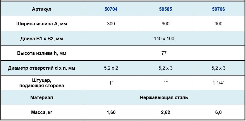 Ширина излива, мм